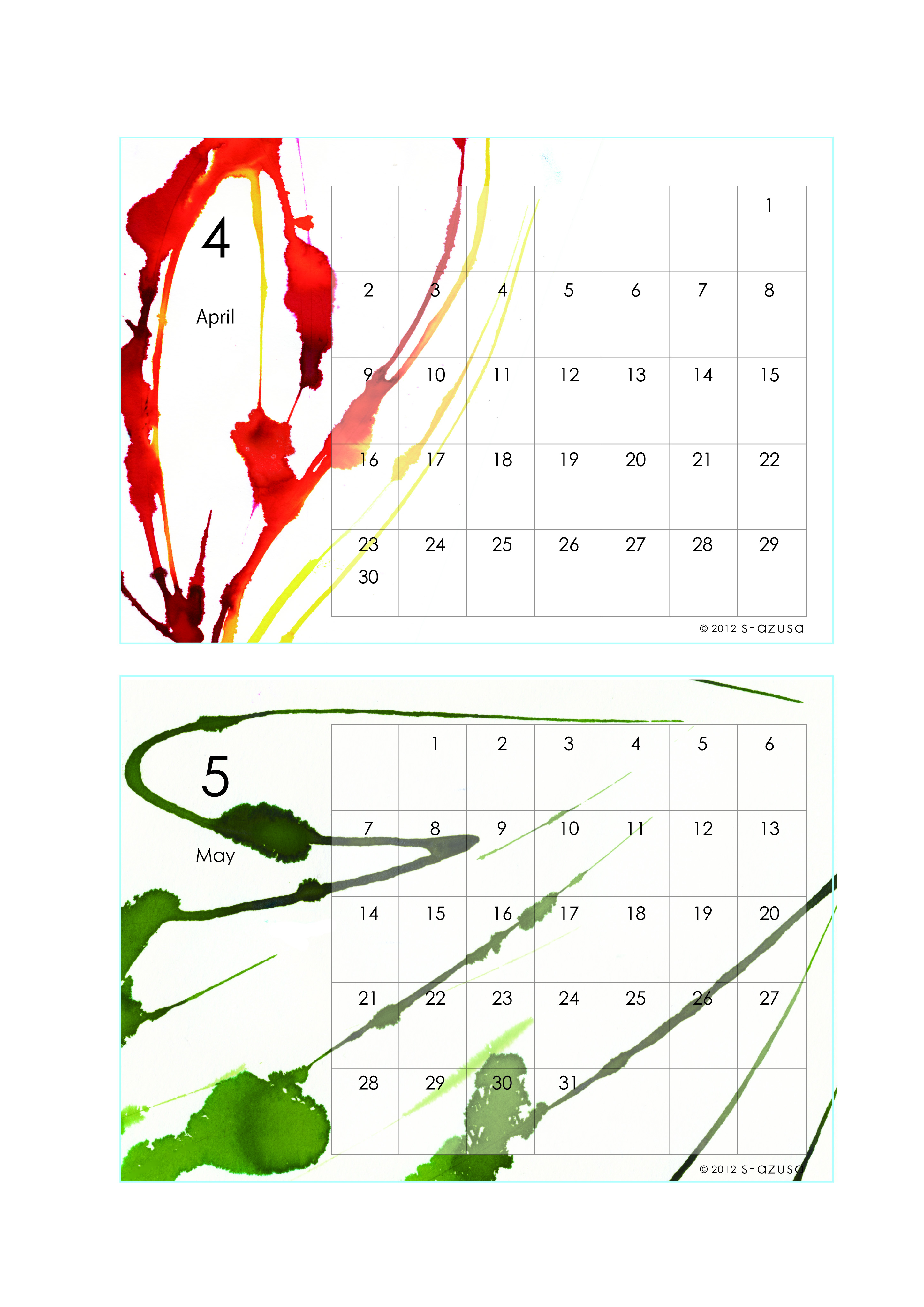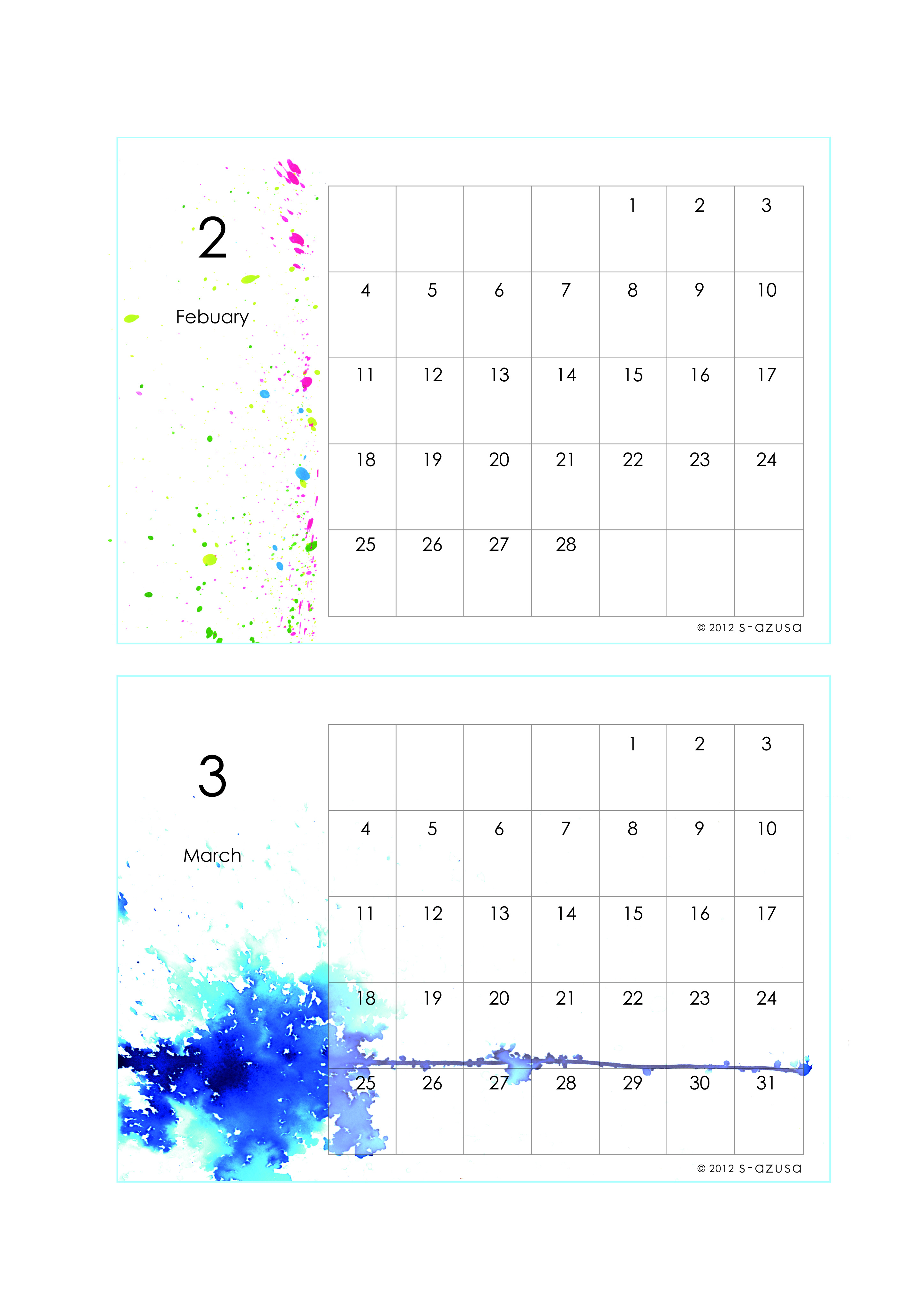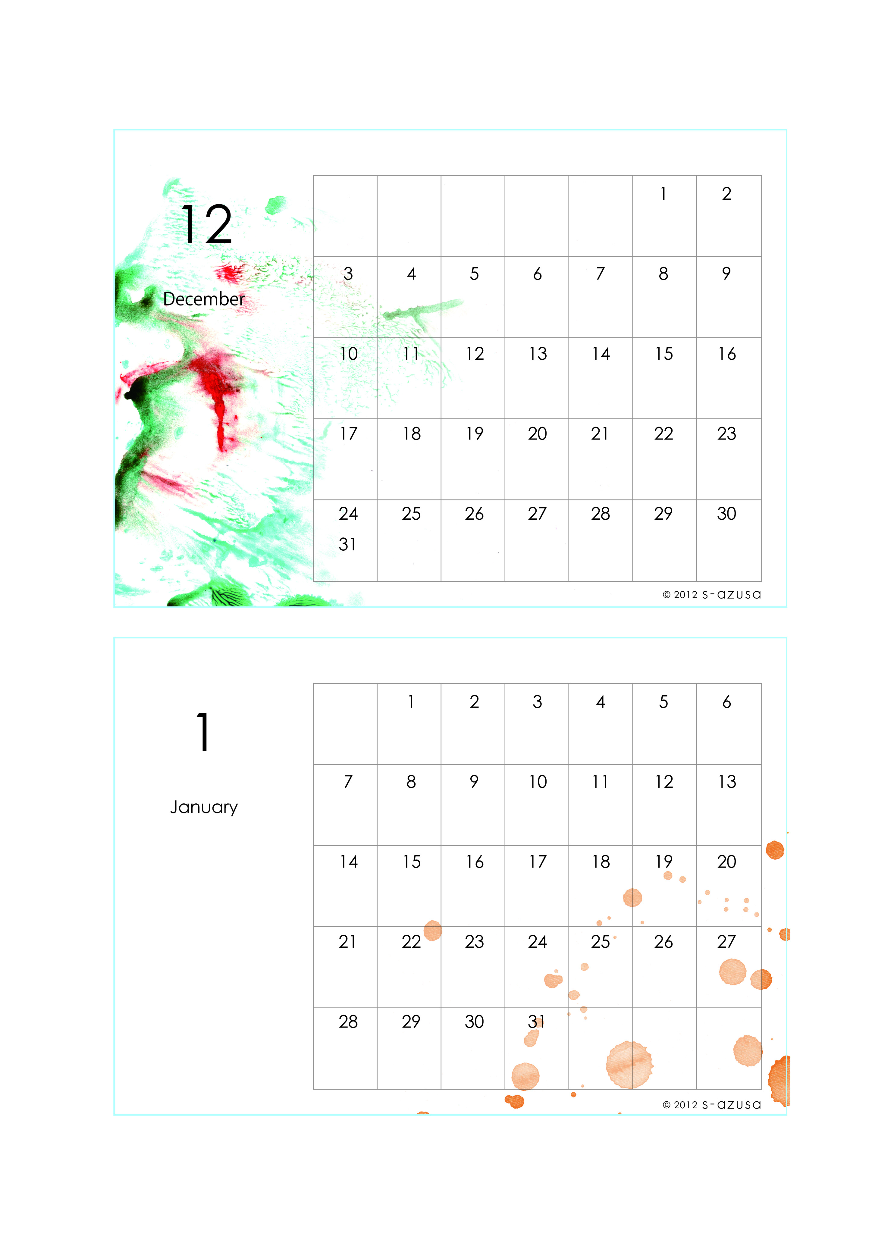 前にお見せした2012-13カレンダーのデータ配布の形が決まったので、やっとお目見えです! ●A4サイズに、拡大・縮小なしで印刷するように作っています。 ○個人的・非営利使用に限り、自由にお使いいただけます。 ○そのほかのご利用についてはご相談ください。 なにかお気づきの点がありませば、ご連絡頂ければ幸いです。 【表紙画像ダウンロード】 月々に関しては、つづきから。 【4-5月ダウンロード】 【6-7月ダウンロード】 【8-9月ダウンロード】 【10-11月ダウンロード】 【12-1月ダウンロード】 【2-3月ダウンロード】 どうぞよろしくお願いいたします。 PR