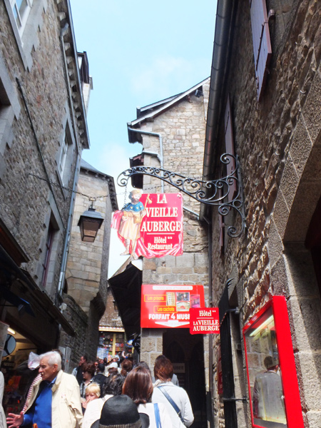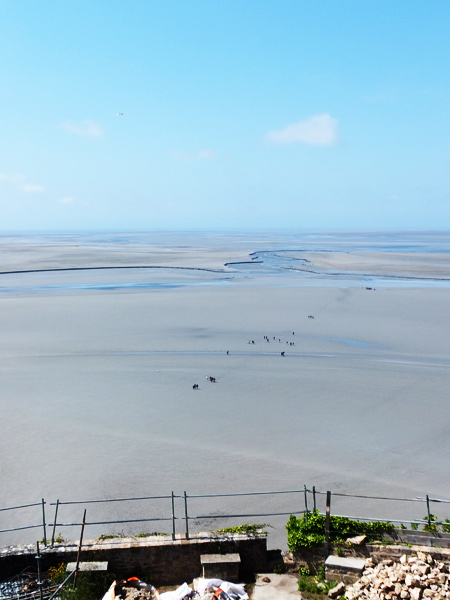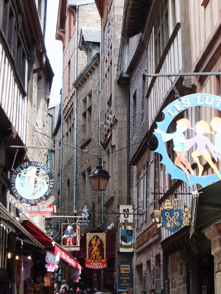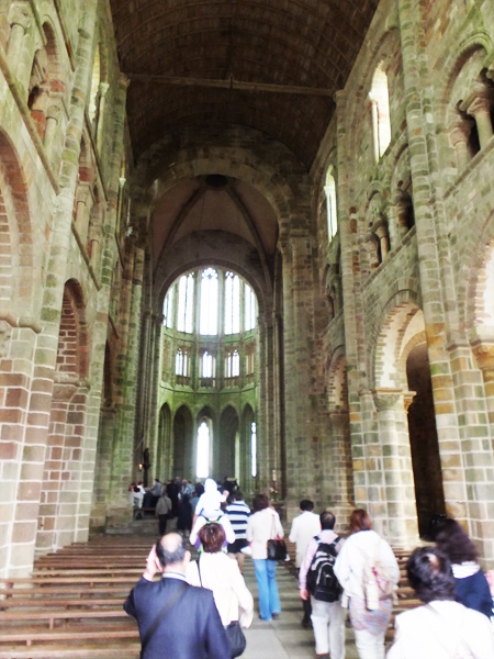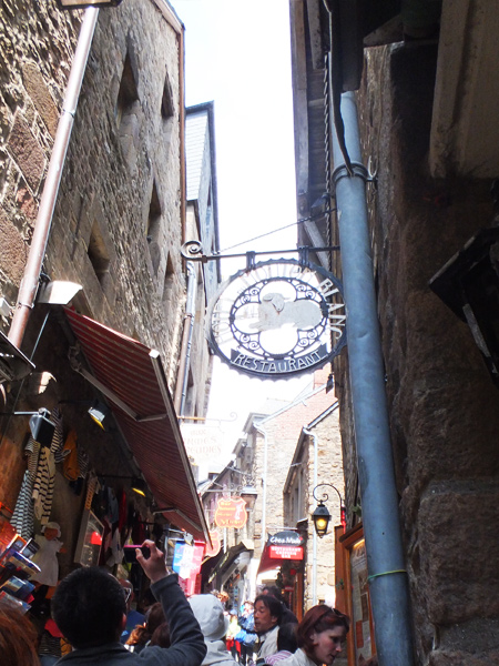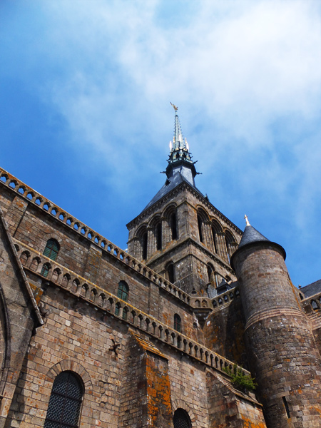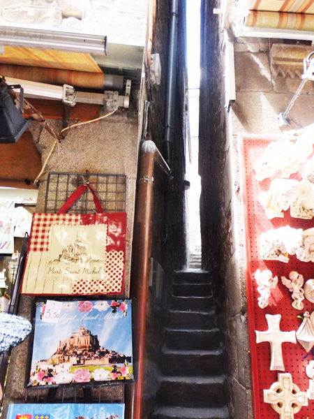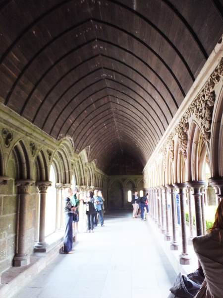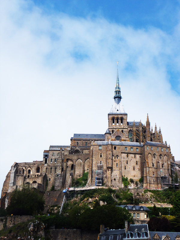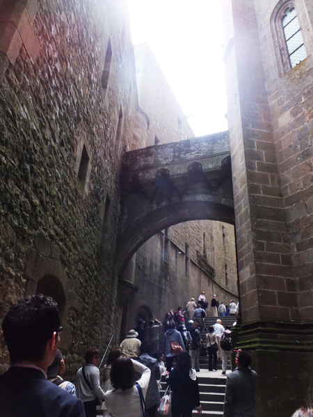 モン・サン=ミッシェルまでバスツアーで向かいました。 ●Mont-Saint-Michel et sa baie 岩の小島に土台を組み、建築し、あるいは岩を掘り下げて地下階を作って建てられたこの修道院。 地平線の上にぽっかりと建てられた、美しい場所です。 ●バスから見える風景 最初は高速道路を通っていくのですが、郊外に出るとのどかな風景。 日本よりも、畑のスケールが大きい大きい! そして、遠くまで白く羊や牛たちが佇んでいます。のどか。 今年は春が遅かったらしく、五月末に訪れた時点で菜の花が満開でした。 ●バス途中立寄の港町、オンフルール(Honfleur) パリからバスで3時間ほどの場所。画家の街としても有名だそうで、沢山の観光客が居ました。 船着き場をぐるりと囲んで、縦長の建物がひしめいています。 続きは、「続きから」どうぞ。 オン・フルールの街中で、古びたメリーゴーランドが、音楽と共にゆったりと回ります。 お客がいなくても回ります。街中にメリーゴーランドを置く文化なんですね。 魚屋さん。「壁がない!!全部屋根!?」のインパクトがすごい。 魚屋さん側面。人が並んでいるのはトイレです。 トイレから出てくる人たちが口々になにかびっくりしているなあ、と思ったら、どうやら便座の座るところがなかったそうで… 観光地とはいえ、なんだかこの場所には「らしいなあ」と感じます。 現役絵描きのイーゼル。 油絵や水彩画を屋外で描いたり、見せたり、その場で買ったり、という雰囲気は、やっぱりいいものですね。 日本だと、絵描きは屋内の仕事だからなあ。 もう少し人の目に触れたり、描き手と見る人の距離が近づくといいんだけど。 ●モン・サン=ミッシェルの対岸 オンフルールからさらにバスで3時間。 モン・サン=ミッシェルは、ほぼ島ですが、かろうじて道が繋がっています。 満潮時には水没する道ですが、そこを往復するだけのバスがこれでした。 木造っぽいデザインがかわいい! バスで3分くらいの距離なので、潮が引いていればもちろん歩いて渡れます。 ●間近にモン・サン=ミッシェル 現在残っている石造の部分は、11世紀から14世紀にかけて徐々に建てられたものらしいです。 時代によってデザインや建築方法が変化していき、ロマネスク様式からバロック様式への変化が見られます。 一部だけ屋根がごつごつしていたり、そんな様子も面白い。 ●モン・サン=ミッシェル名物のオムレツ モン・サン=ミッシェルは聖地として巡礼を受け入れていますが、かつては確かな道もなく、2kmの砂浜を歩く最中に潮の加減で波にさらわれる人も多かったといいます。 そんな厳しい道のりをやってくる巡礼者に、修道女プラールがふわふわに泡立てたオムレツを与えたのがはじまりだそう。 とにかく泡立て器でかきまぜて、さっと焼いたものです。 この写真は、モン・サン=ミッシェルの対岸で食べたもの。 ちなみにグラスに入っているのは、この地方の名物「シードル」。リンゴの炭酸酒です。おいしい。 上のオムレツを現地で実演しているのがこの店だそうです。 店の前を歩くと「かしゃかしゃかしゃ…」と聞こえてきます。 ●様々な看板 モン・サン=ミッシェルは「なるべく昔の状態を保つ」という意識があります。 この看板たちも、色あせるたびに昔と同じ色で塗り重ねて、補修して、いつでも同じに見えるように手入れしてあるとのこと。 修道院の部分は10世紀も昔の部分もあるので、改修工事もなされていますが、それでもステンドグラスや彫刻が同じようになるよう(あるいは、当時の様子が分からない場合は「わかりませんでした」と理解できるように、あえて違うように補修するよう)になっています。 ●街で一番細い道 なんとか通り抜けられました。 ●ジャンヌ・ダルクの像 モン・サン=ミッシェルは大天使ミカエルのお告げを受けて建てられたものです。 そしてこのジャンヌ・ダルクも、ミカエルの託宣を成し遂げた者ということで、像が建てられています。 ミカエルさんはなかなか面白いおひとなので、モン・サン=ミッシェルの託宣のくだりなど調べてみると楽しいと思います。 ●修道院への道 街を過ぎ、上へとのぼっていくと修道院へと続きます。 左の建物は修道士(男性)の居住区とのこと。 現在は男女あわせて13名が修道院につとめているそうです。 ●金色のミカエル像 修道院のてっぺんを飾っています。これ、実は新しいもので、避雷針として付けられたものだそうです。 教会の天井は木材の部分も多く、落雷によって礼拝堂の天井が焼けおちたことも。 ミカエルさんはここでも庇護の役割をなしているわけですね。 ●三階、修道士の回廊庭園 本来は修道士のみが入れる「天に一番近い場所」。 煩悩を捨てるために、一方通行で(顔を合わせると煩悩が生まれるため)、聖書を読みながら、ぐるぐると巡るそうです。 ●礼拝堂 天井たかく、栗の木のアーチが綺麗な曲面をなしています。 樫の木のずっしりとした椅子が並び、荘厳な雰囲気。 ●聖ミカエル