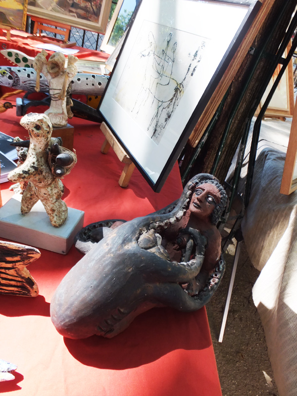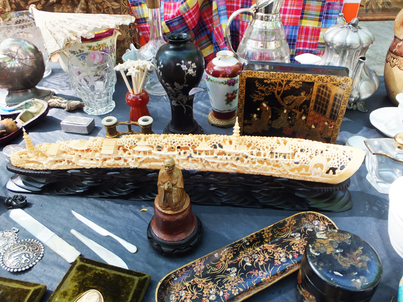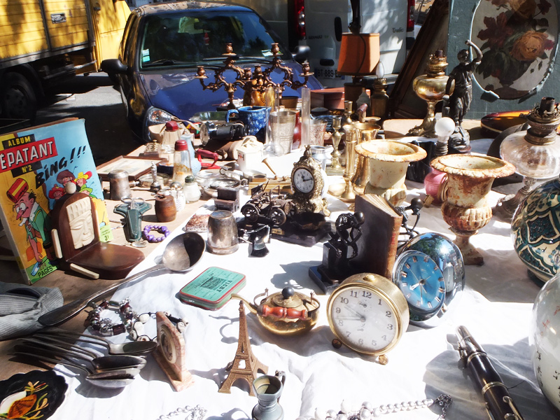 パリからメトロに揺られて南西、ヴァンヴ(Vanves)に行きました。 ●町並みが変わってきました パリの重厚な高層マンションとは打って変わって、近代的な一軒家などが立ち並びます。 それでも、石造りやレンガ作りの家が多いのは流石フランス。 ●路上の音楽家 交差点から音楽が響いてきたとおもったら、小さなチェンバロを弾く方が。 流しの音楽家はみんな達者。凄いなあ。 また、この音色がここの空気にぴったりなんです。 少しもおどけてたり、浮いてたりしないで、馴染んでいる。流石です。 ●蚤の市って、こんなかんじ。 路上に車を置いて、車の中〜横断歩道に机を出して、骨董品や道具たちを陳列しています。 どこにこんなに沢山あったの! ってびっくりするくらい、どの人もコレクターだし、なんでもかんでも蒐集されています。 どんな店があったかは、続きからどうぞ。 多いのは、ガラス細工や食器の類。 それにとどまらず、和洋問わず、置物、雑貨、布、本などがある。 これは番傘? はるばるフランスまで、誰かの旅行のお土産か、はたまた嫁入り道具だったのか…。 卓袱台くらいの面積があるお皿。パーティ用でしょうか。 カエルとウサギの陶器の置物。ユーモラスな表情です。 水彩から油彩まで、絵画を扱う人も。 こんなフリマみたいな場所で生の絵を売るのって日本じゃあまりありませんよね。 なんだかやばそうな置物…。ゴクリ。 なんて細かい寄木細工!しかもキラキラしているところは螺鈿ですよ奥様! 象牙の細工は、彫刻の中に庭園が彫り込まれているのです。こんな路上で売ってていいのかなあ。 天使と馬のブックスタンド。暖炉の上にありそう。 車輪やじょうろまで、買っていく人がいるのかな? 通りの一本や二本、ちょっと入っただけでものすごい密度の空間でした。 好きずきに手に取って、気に入ったら交渉(値切り)して。 私も、布の端切れを記念に買いました。 いやあ楽しかったです! PR
