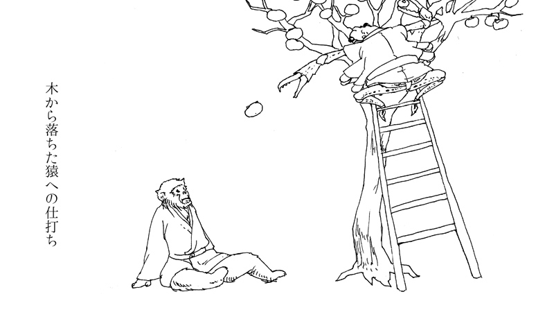【イラスト:14】 十二匹の言葉:09:木から落ちた猿への仕打ち